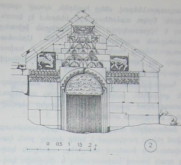 travelers and their animals as they crossed from, or into, the Selim (Sulema) Mountains. Located at the south side of the Selim Pass, in the Vayots Dzor provence of Armenia, this is the best preserved caravanserai in the entire country. Ruins of a small chapel may still be seen adjacent to the vestibule, across the road from a spring. The only entrance to the caravanserai is at the rectangular vestibule adjacent to the main hall of the structure. It has a gabled stone shingle roof that rests on three arches. On the eastern side, these arches rest upon the edges of the windows. The southern wall of the vestibule and the entry wall façade are the few locations in the caravanserai where there is any ornamentation. The entry has decorations around the half-rounded lintel, with high-reliefs of a winged animal to the left, and a bull to the right, above the lintel. The only other decorations may be found on each of the oculi in the hall, which each have a unique design.